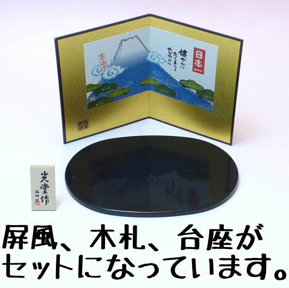 黒い台座と富士山の描かれている屏風がセットに付いています。