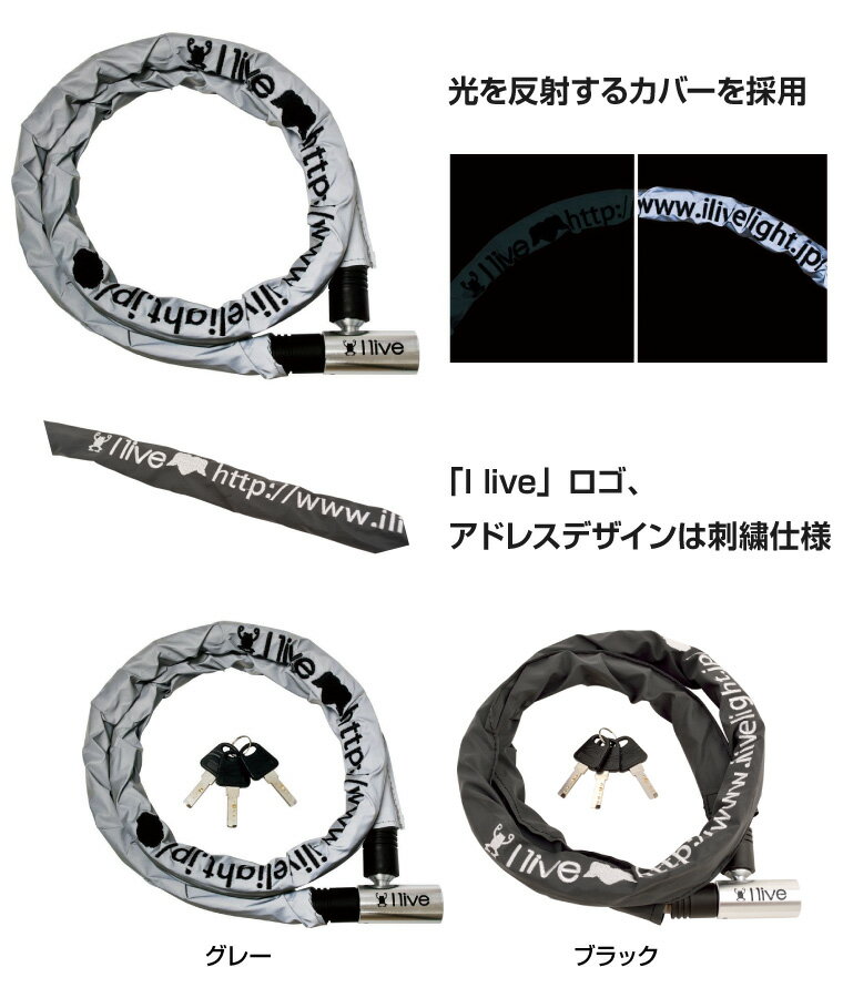 【ポイント5倍!】I live Lock アイリブロック リフレクト キータイプ チェーンロック 長さ1200mm 太さ18mm