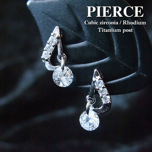 キュービックジルコニア ミュージカルノートピアス / 両耳用 1ペア販売 真鍮 ロジウム メッキ ジルコニア ラウンドブリリアントカット スタッドピアス チタンポスト ストレートポスト セカンドピアス 音符 音楽 エレガント キュート レディース オールシーズン 【RCP】