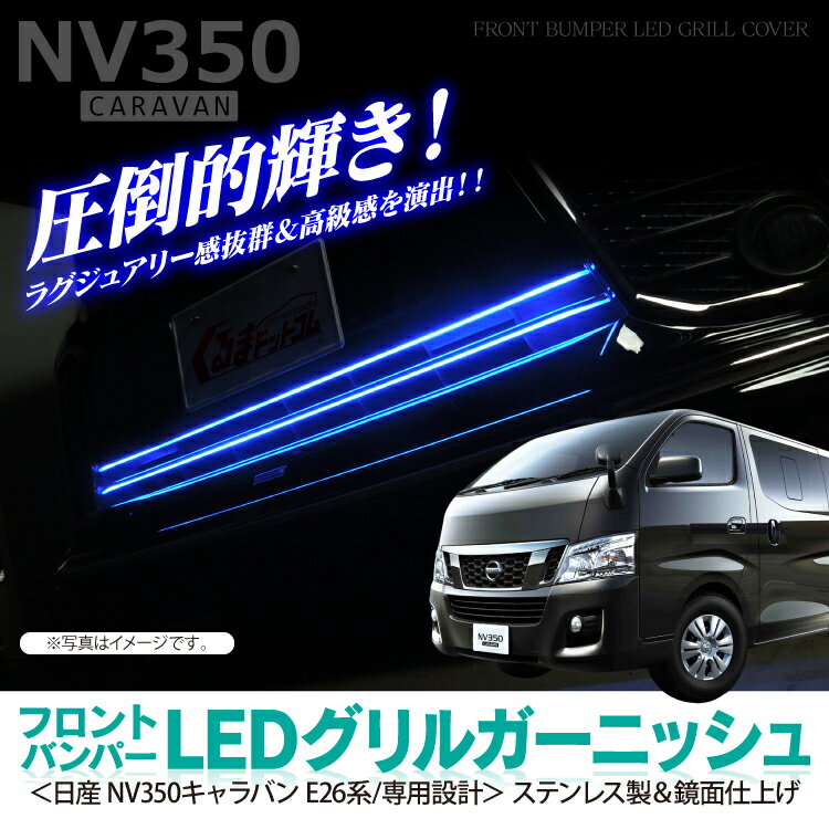 【6/21まで 楽天スーパーSALE】NV350キャラバン E26 カスタム バンパー LED グリルカバー グリルガーニッシュ フロント LED バンパーグリルトリム ガーニッシュ 鏡面仕上げ/ブルー