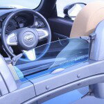 新型コペンにセンタースクリーン新登場 納期:在庫有り フロントシートとリア部を仕切る純正エアーデフレクターをカラフルで透過率の高いセンタースクリーンに交換することで従来のスモークパネル等では後部の視界不良の問題点を改善致しました。