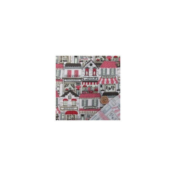 QUILT GATE 街並み柄 シーチング生地 (生成り)キルトゲイト