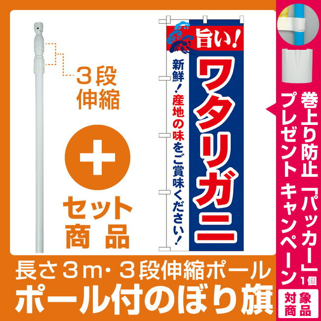 【セット商品】3m・3段伸縮のぼりポール(竿)付 のぼり旗 旨い!ワタリガニ (21644)(寿司・海鮮/カニ(蟹))(カニ(蟹))(カニ(蟹))
