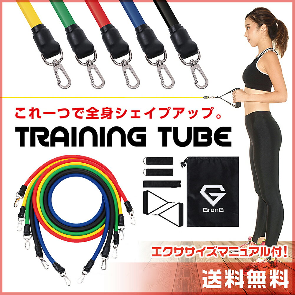 GronG トレーニング チューブ エクササイズバンド フィットネスチューブ 強度別 5本セット